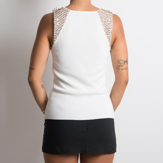 WHITE BEADED TOP
