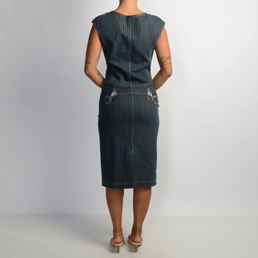 ÉpuiséDENIM STRIPE MIDI DRESS