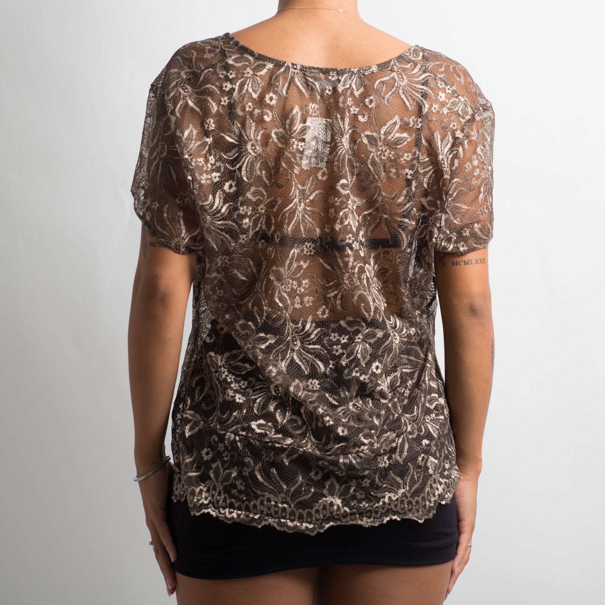 BROWN LACE BUTTON TOP