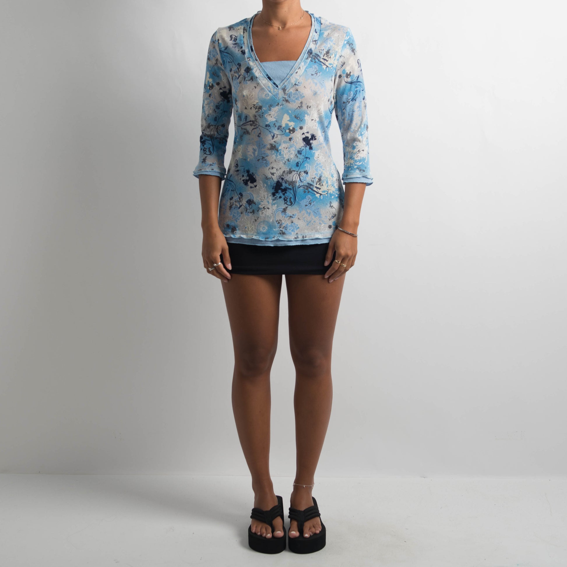 MESH BLUE 3/4 SLEEVE TOP
