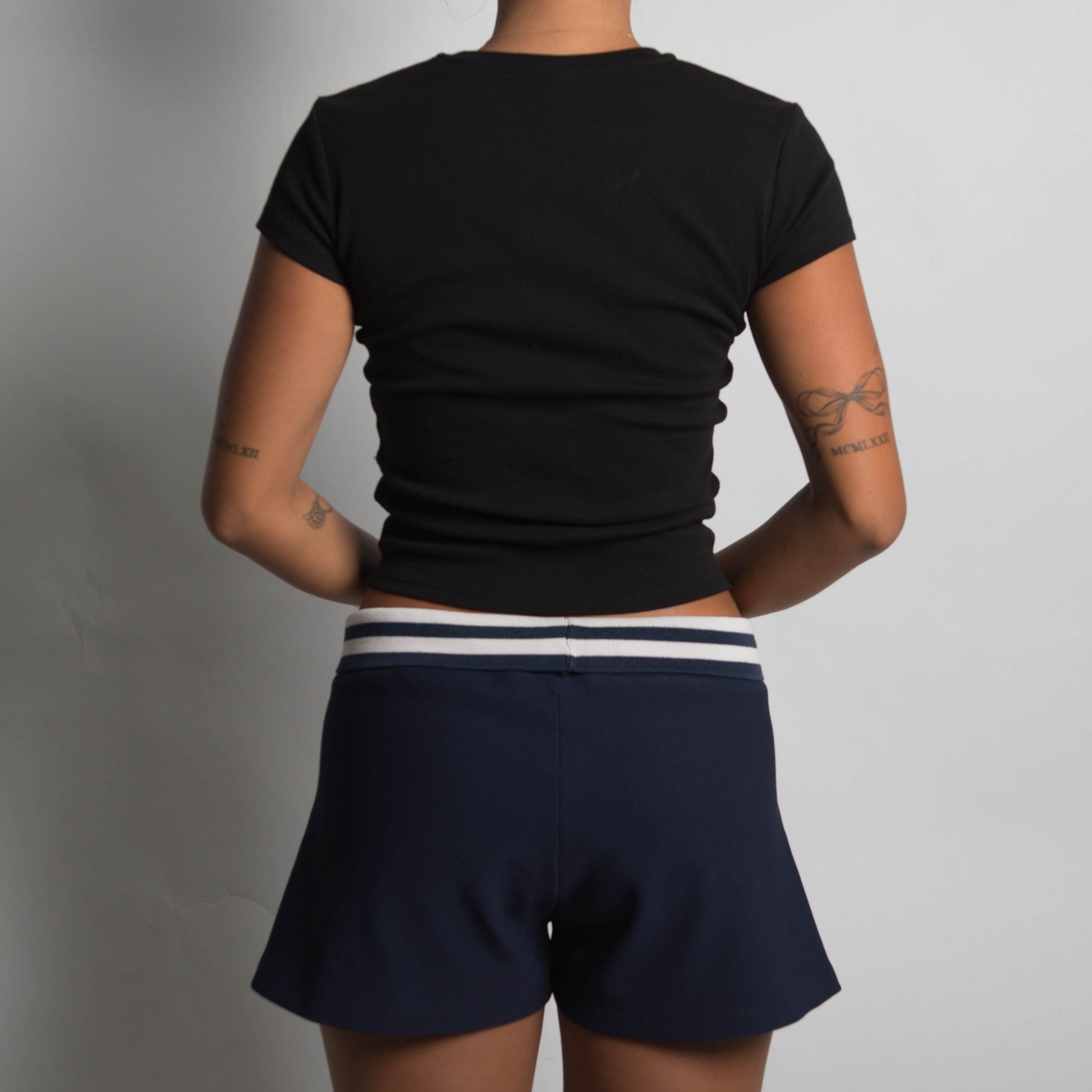 measurements laying flat: 31cm waist, 49cm hip, 24cm rise, 5cm inseam