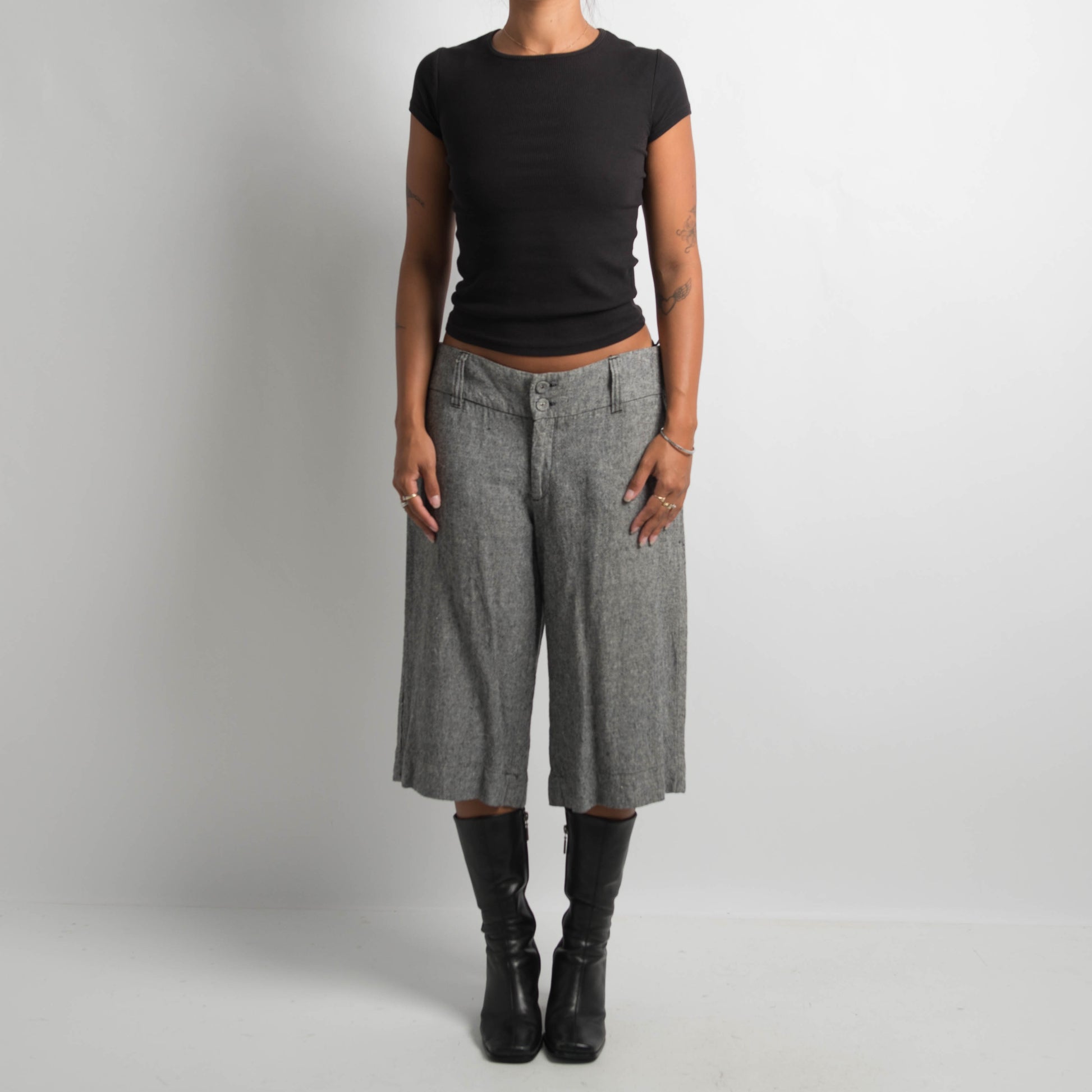 measurements laying flat: 42cm waist, 51cm hip, 24cm rise, 40cm inseam