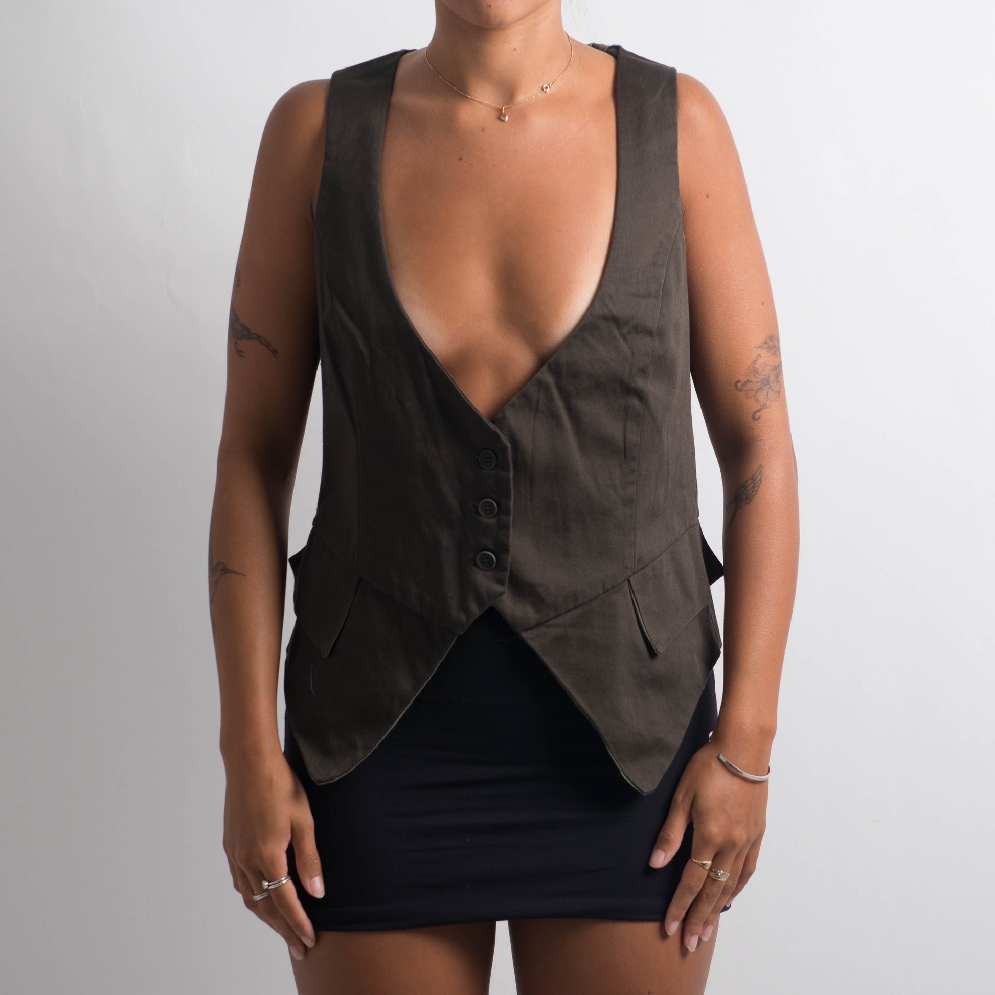 measurements laying flat: 43cm chest, 40cm waist, 26cm length (from underarm)